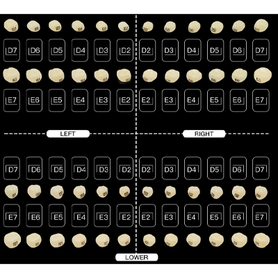 - Lower left teeth: D7, D6, D5, D4, D3, D2, E7, E6, E5, E4, E3, E2