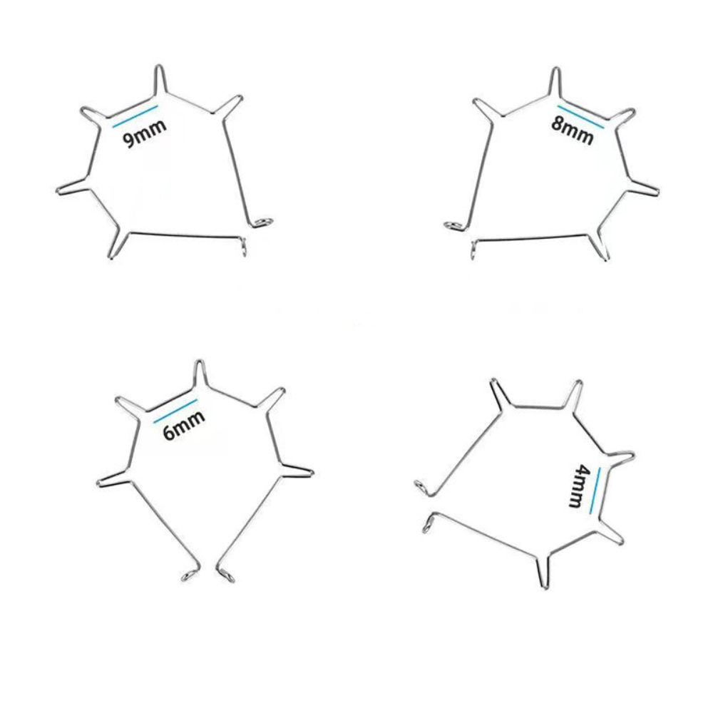 Professional orthodontic five-curve spring designed specifically for anterior teeth correction. Crafted from medical-grade stainless steel with precision five-curve configuration delivering stable and gentle orthodontic forces. Ideal for incisor retraction, rotation, and alignment. Packaged in 5pcs per pack with complete size options.